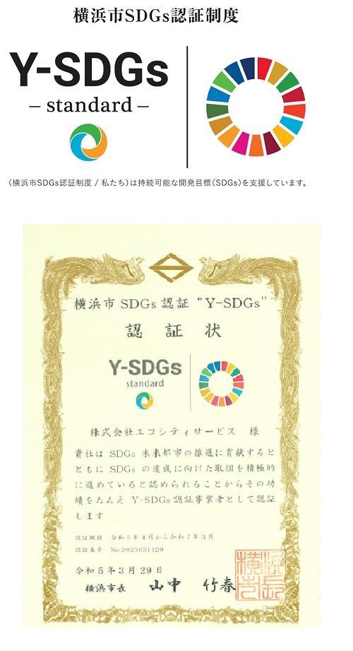 《地域に密着したCSR活動を目指します》 企業が社会的責任を果たすことで、ステークホルダーの皆様から満足をいただけると共に、相互の信頼関係が構築され、企業の永続的な発展へとつながります。 当社では、こうした活動を積極的に行うことにより、地域の皆様に愛される企業を目指します。 ■ 横浜型地域貢献企業 本制度は横浜市民を積極的に雇用すること、また、市内の取引を重視するなど地域を意識した経営を行っている企業が認定される制度です。本制度を通じて、地元により密着した企業活動を推進して行きます。 地域志向CSR基本方針 ■ 横浜市SDGs認証制度「Y-SDGs」の認証を受けました。 弊社は、横浜市より横浜市SDGs認証制度「Y-SDGs」第9回認証事業者に認定されました。 弊社の事業活動を「環境」「社会」「ガバナンス」「地域」の4つの分野、30項目にて評価を受け、 横浜市に本社を置く事業所として、地域に密着した取り組みが高く評価され、今回の認定となりました。 これからも、SDGsへの取組みを推進し、グループ全体の目標である 『労働格差をなくし、生き甲斐が持てる職場を創出することで、世界の人々の人生を豊かにし、誰にもしわ寄せのいかない、誰の目からも明らかな、企業価値向上に向けた取り組み』に向けて、SDGsの普及・促進活動を社員一同全力で取り組んでまいります。